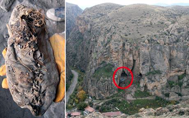 Sapato de 5500 anos e a caverna onde foi encontrado na Armênia