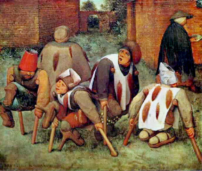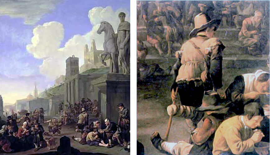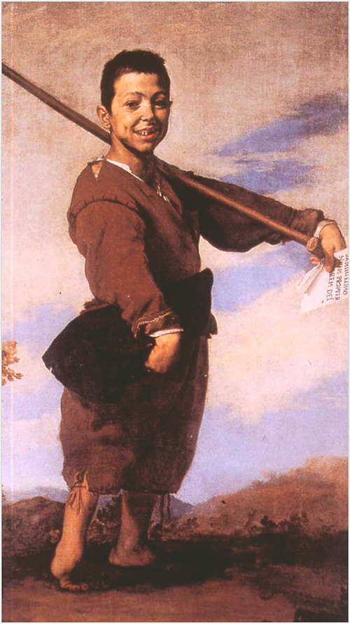 Nesta tela de 1642 ele retrata um pequeno mendigo, menino aleijado, provavelmente pela paralisia infantil. Em sua mão esquerda carrega um papel escrito: “Da Mihi Elimosinam propter AmoremDei – Dá-me esmola pelo amor de Deus”, porém, seu rosto mostra-se sorridente e confiante na sua fé. Este quadro representa uma crítica contra o protestantismo do século XVII, exaltando o poder das boas ações Cristãs.