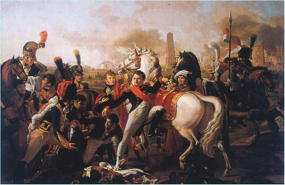 11. Napoleão, com uma lesão no pé, é tratado pelo seu cirurgião Yvan após a vitória contra o império austríaco na guerra de Regensburg, de 19 a 23 de abril de 1809.